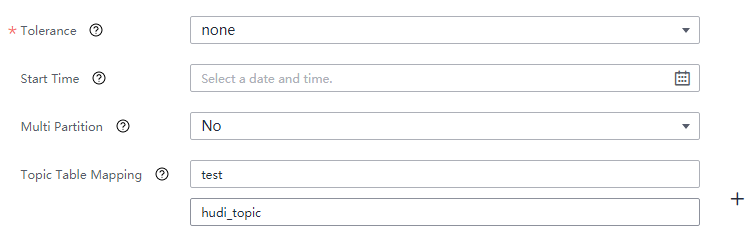 On the CDL web UI, configure the thirdparty-kafka link that uses MRS Kafka as the source. For example, the data link configuration is as follows: