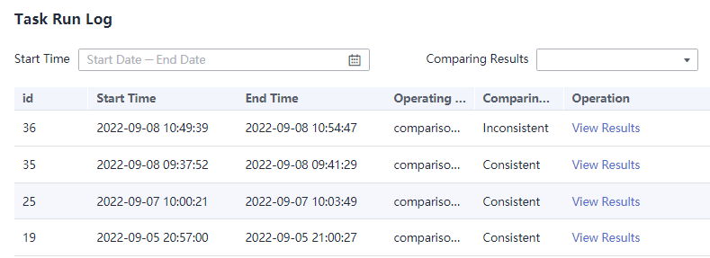 7. In the Task Run Log window, locate the target task and click View Results in the Operation column.