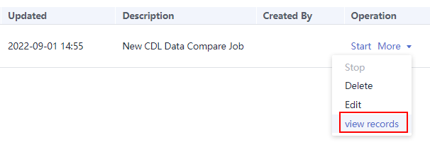4. In the data comparison task list, click Start in the row of the task to start data comparison.