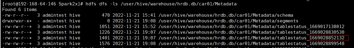 hdfs dfs -ls /user/hive/warehouse/hrdb.db/car01/Metadata