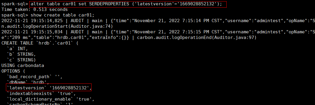 alter table car01 set SERDEPROPERTIES ('latestversion'='1669082252132');