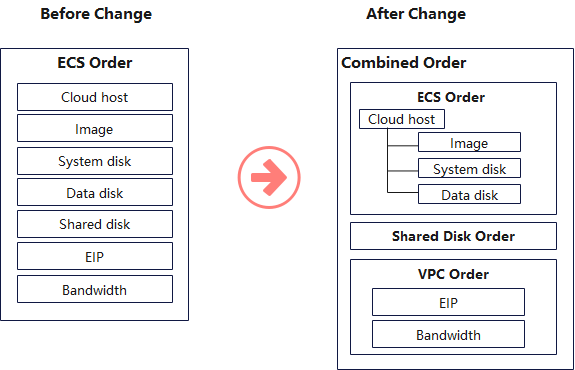 Before the combined service is introduced, only one order is generated, on which the ECS and all resources you added are listed.