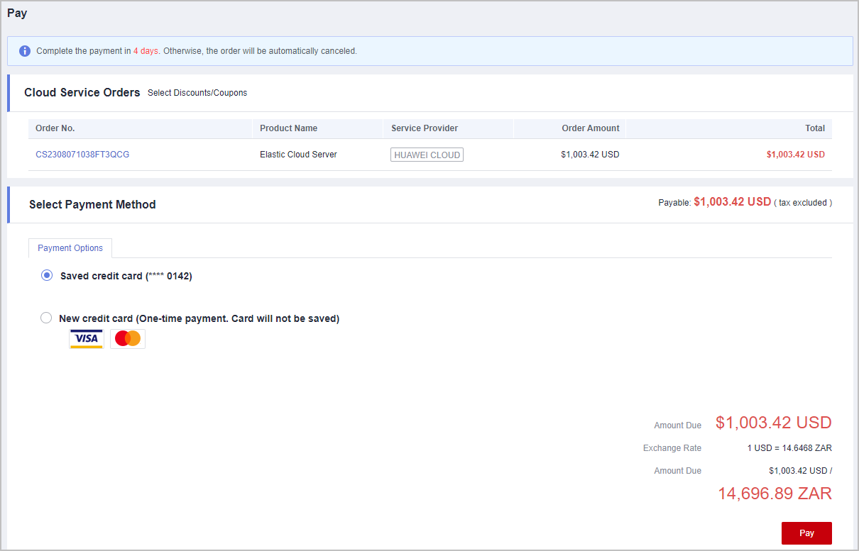 • Current order details of changing the billing mode from Yearly/Monthly to Pay-Per-Use: