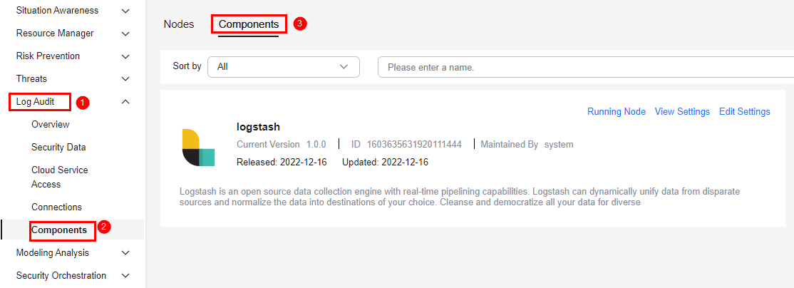 4. In the navigation pane on the left, choose Log Audit > Components. Then, select the Components tab.