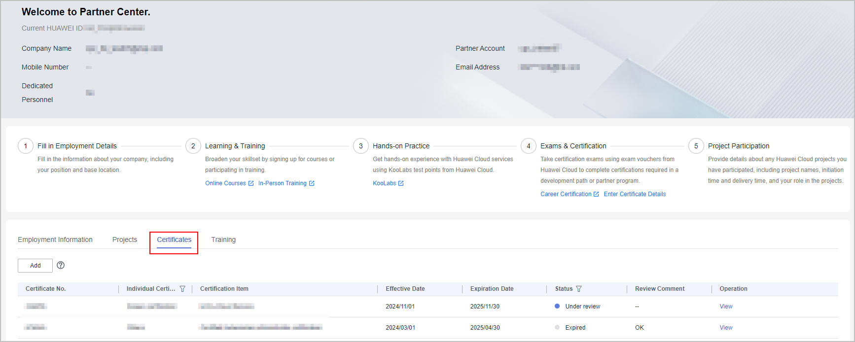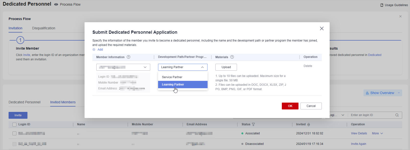 - The partner administrator submits a dedicated personnel application. For details, see Submitting a Dedicated Personnel Application.