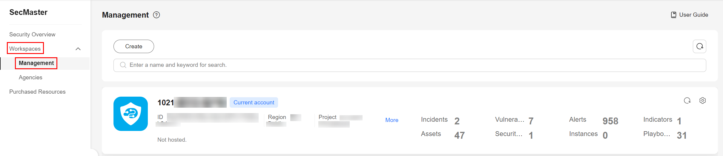 Workspaces are top-level workbenches in SecMaster. Before using SecMaster, you need to create a workspace first.