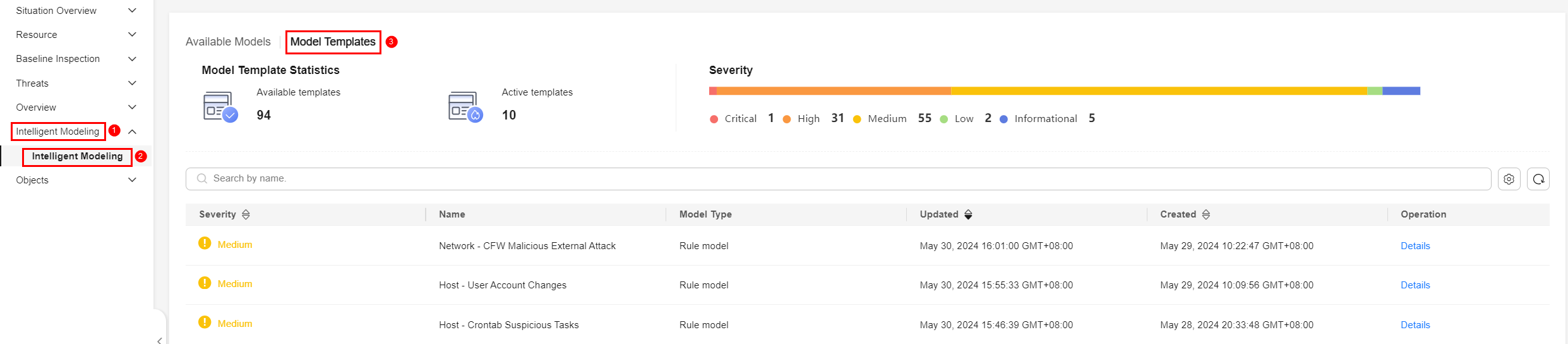 SecMaster provides many preconfigured threat detection models. These models were designed by security experts and analysis teams based on known threats, common attack media, and suspicious activities. You will receive notifications once suspicious activities trigger those models. These models automatically search the entire environment for suspicious activities. You can also create custom threat detection models to meet your needs.