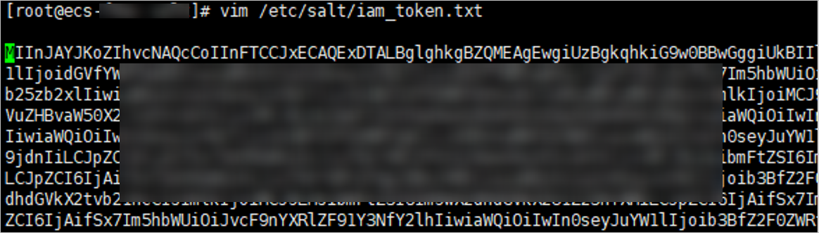 - Run the vim /etc/salt/iam_token.txt command to check whether the /etc/salt/iam_token.txt file exists.