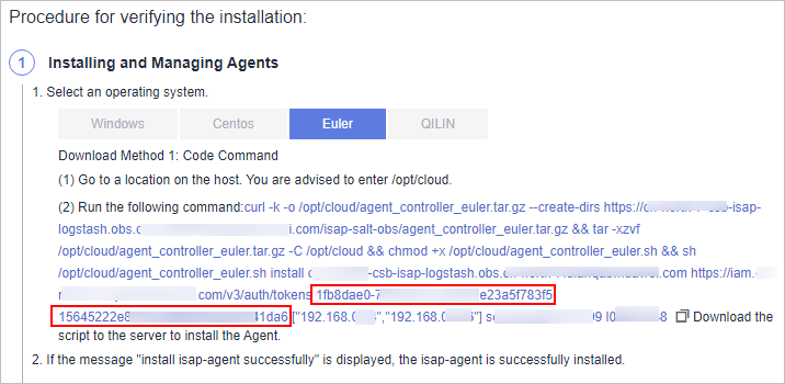 During the isap-agent installation, the following information is displayed: