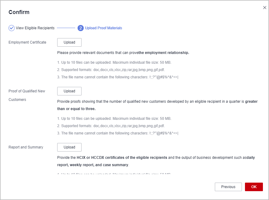 At the beginning of each quarter, Huawei Cloud will generate incentives based on the number of eligible recipients and relevant requirements. And you will receive an email notification of incentive reconciliation. You have to check and confirm the incentives and number of recipients and provide required proof materials.