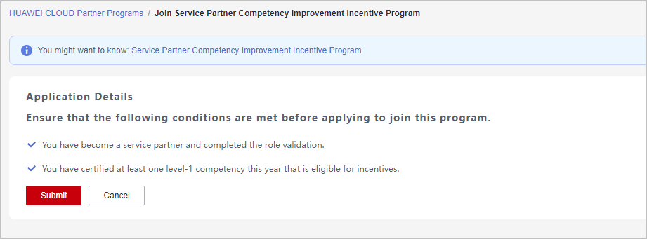 - Ensure that the conditions for joining the program have been met and click Submit.