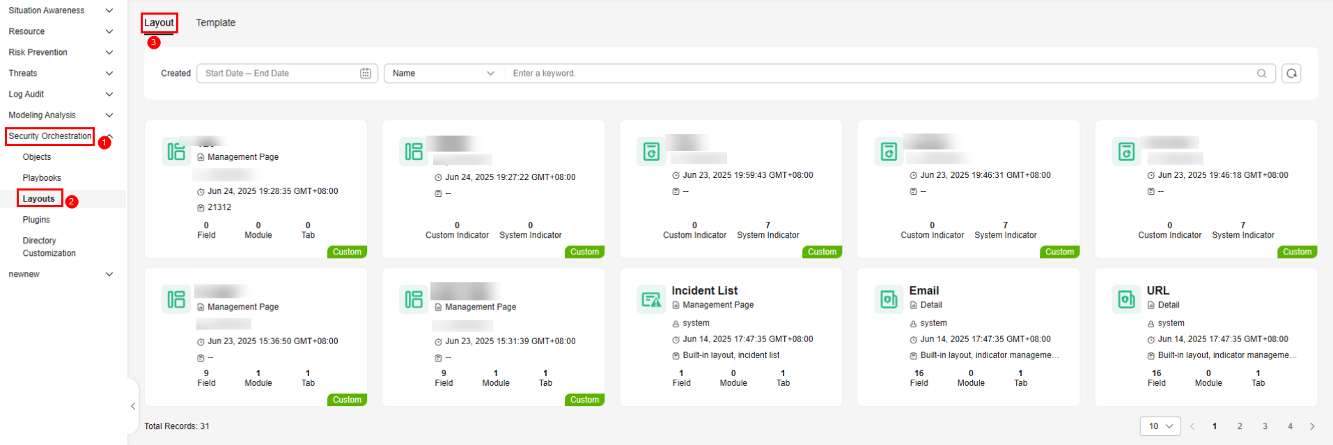 There are multiple page layouts, such as the Alert List, Indicator Details, and Vulnerability Details layouts.