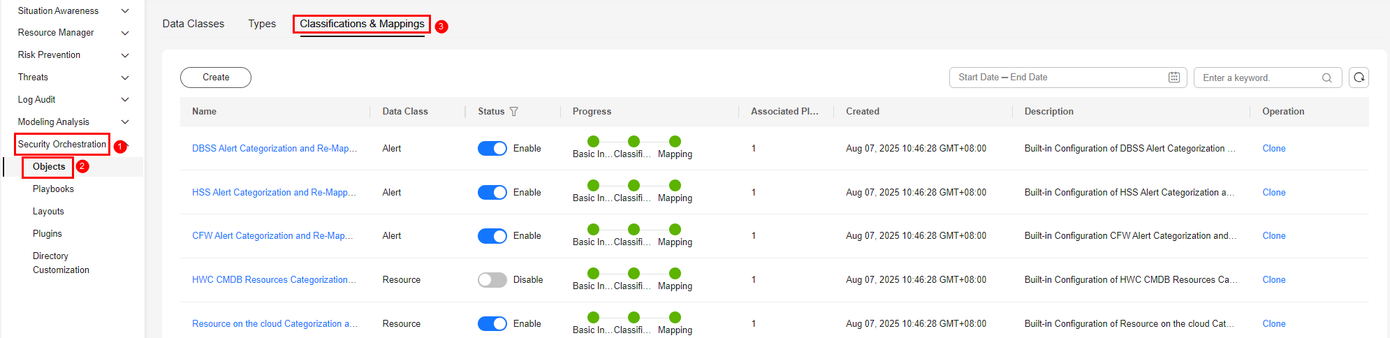 5. In the navigation pane on the left, choose Security Orchestration > Objects. On the page displayed, click the Classify&Mapping tab.