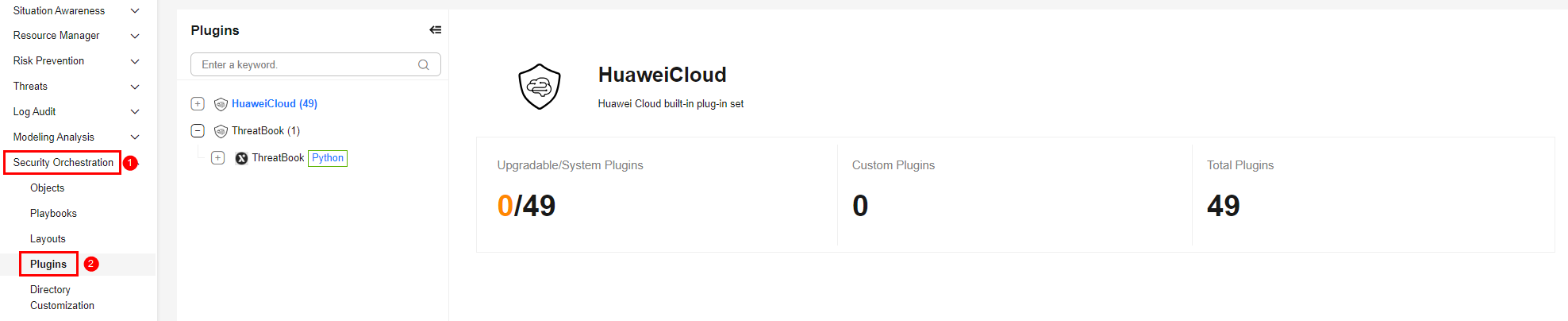 5. In the navigation pane on the left, choose Security Orchestration > Plugins.