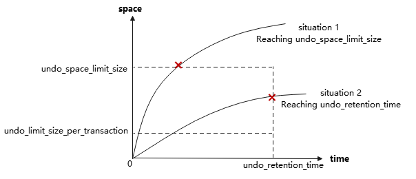 在undo_retention_time、undo_space_limit_size、undo_limit_size_per_transaction中,先触发的空间阈值会先进行约束限制如图1所示: