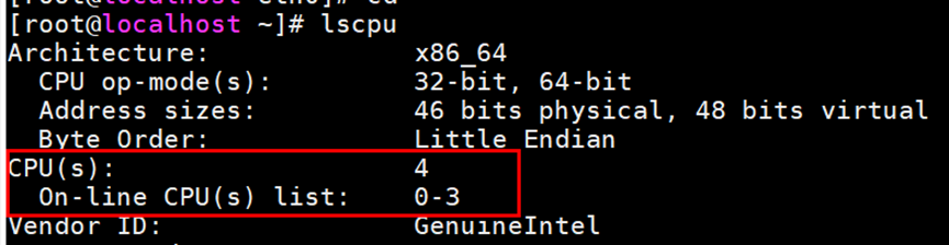- 执行lscpu查看当前CPU核心数,本例有4个CPU核心