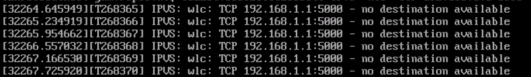 If an IPVS is configured but no real server is set up, when a network request is sent to the virtual server address, an error log similar to the following is displayed in the CLI after you log in to the ECS using VNC.