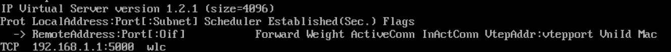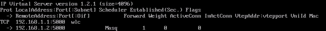 - Run the ipvsadm -Ln command to query the configuration of the current virtual server. Find the entry corresponding to the virtual server for which an error is reported.