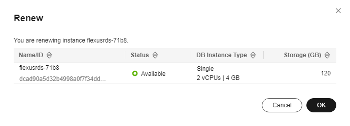 2. In the displayed dialog box, confirm the instance to be renewed.