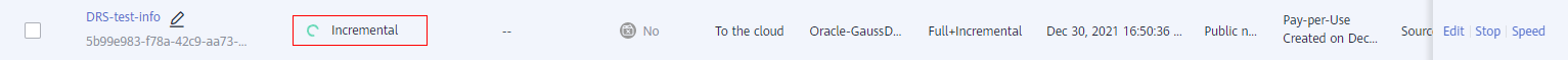 When the task status changes to Incremental, the full synchronization is complete. You can log in to GaussDB and view the data migration result.