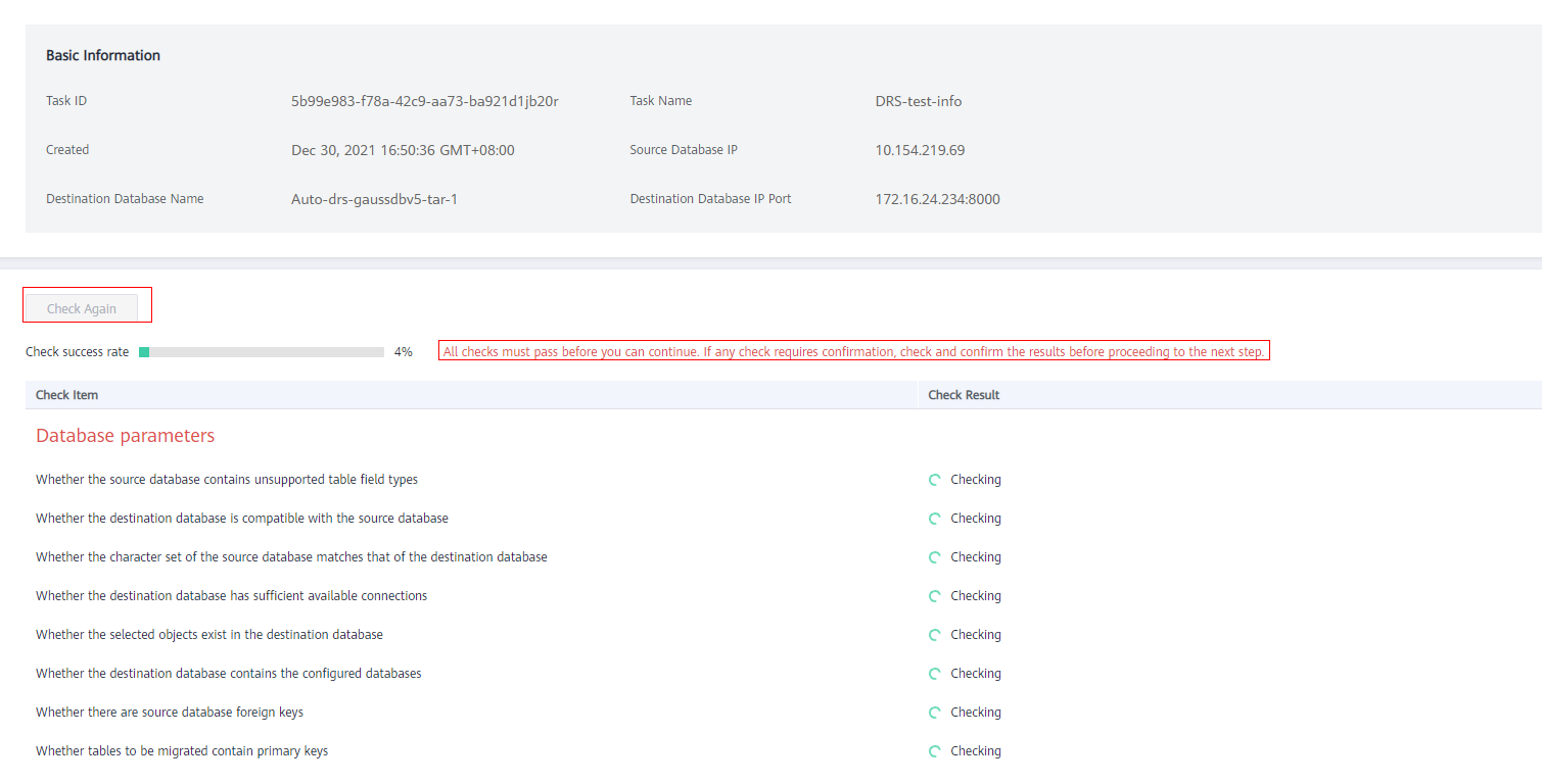 Before creating a migration task, check the migration conditions to ensure smooth migration.