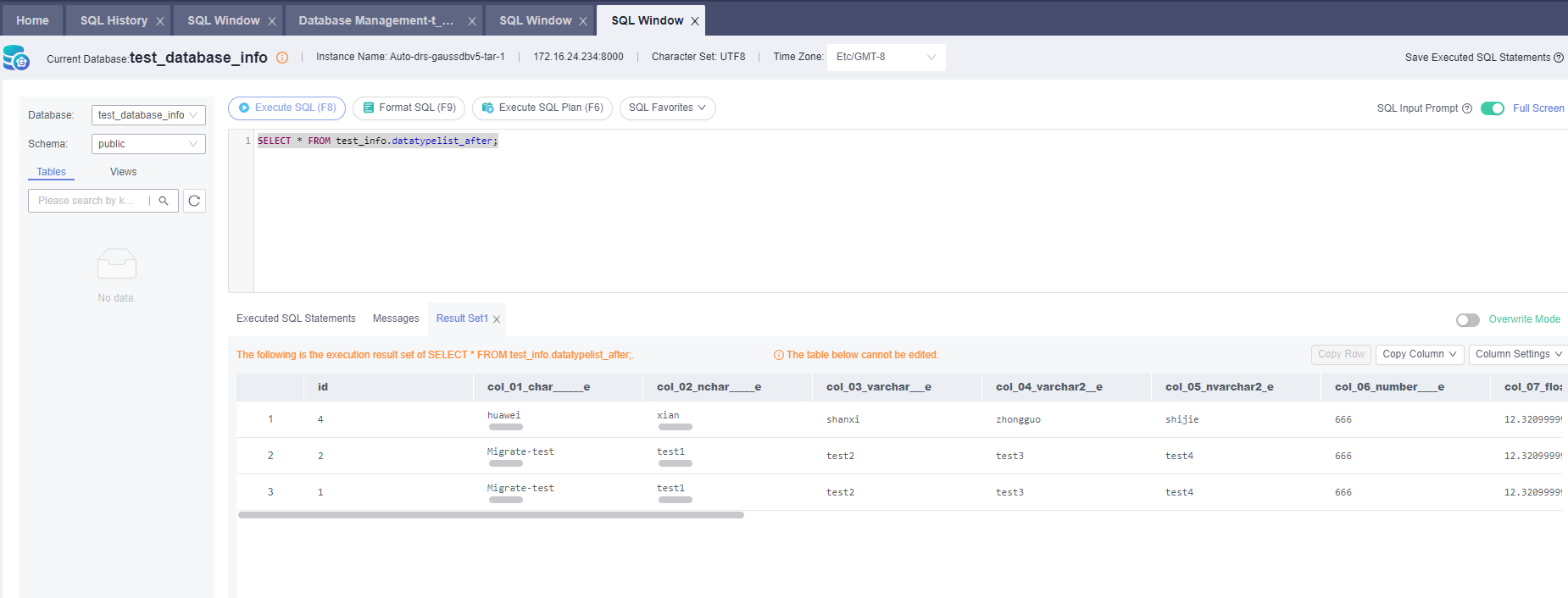 As shown in the following figure, all data types in the table were successfully migrated and the data is correct.