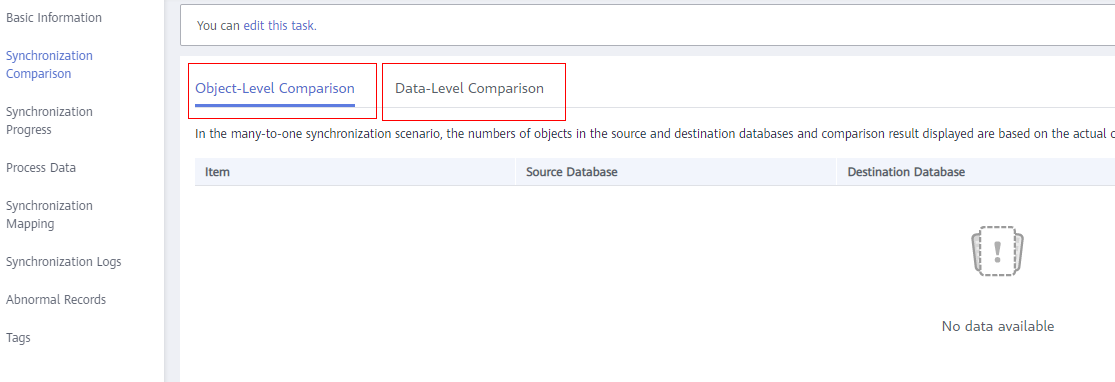 - A comparison task is started after the incremental replay is complete to check the data consistency. Real-time comparison is supported.