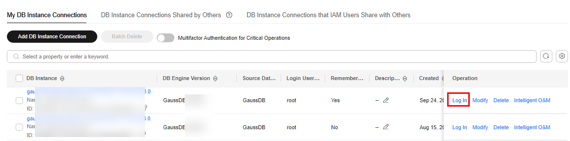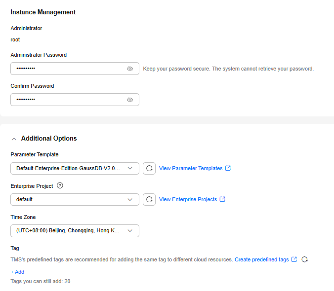 Enter the password of the root user of the GaussDB instance created in this example. |