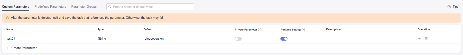 Click Create Now to create custom parameters. For details, see Configuring Custom Parameters.