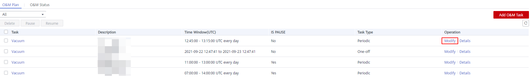 4. In the O&M Plan area, click Modify in the Operation column of the target task.
