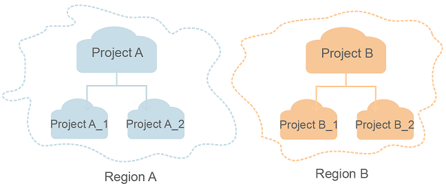 A project corresponds to a region. Default projects are defined to group and physically isolate resources (including compute, storage, and network resources) across regions. Users can be granted permissions in a default project to access all resources under their accounts in the region associated with the project. For more refined access control, create subprojects under a project and purchase resources in the subprojects. Users can then be assigned permissions to access only specific resources in the subprojects.