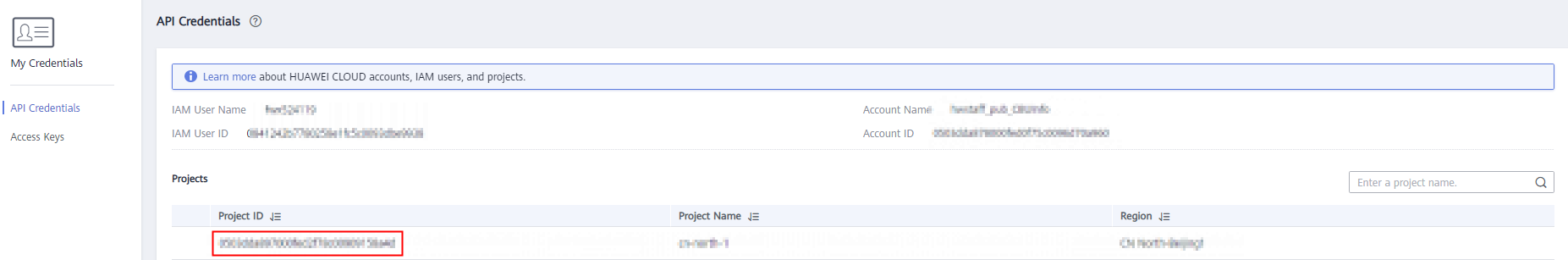 You can also call the API for querying project information based on the specified criteria to obtain a project ID.