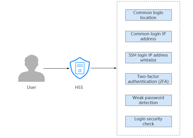 You can configure common login locations, common login IP addresses, SSH login IP address whitelist, two-factor authentication, weak password check, and login security check to protect login security.