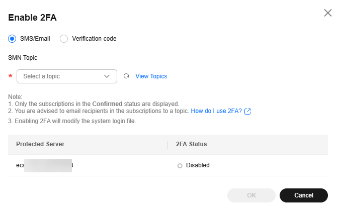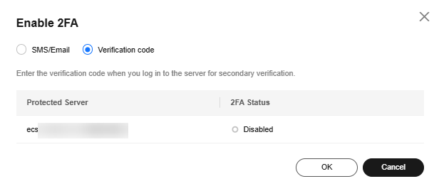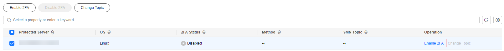 Select servers and click Enable 2FA to enable 2FA for the servers at a time.Figure 8 Enabling 2FA