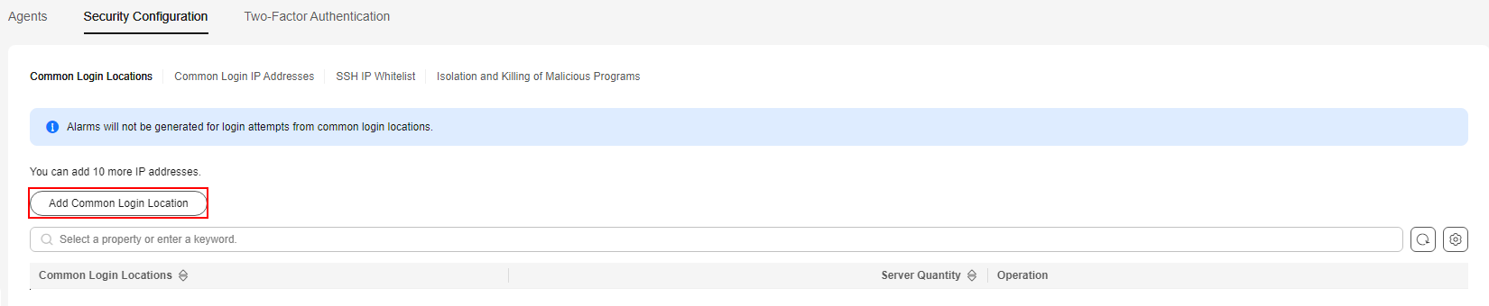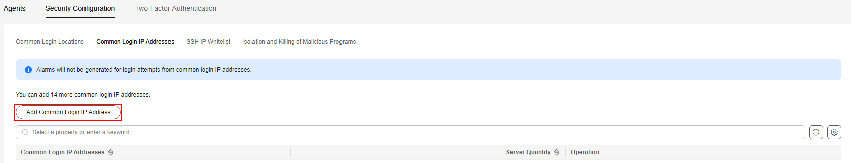 - Click the Security Configuration tab page and click Common Login IP Addresses.