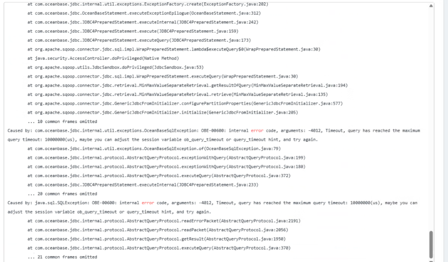 Error message "query has reached the maximum query timeout" is displayed during migration from OceanBase.