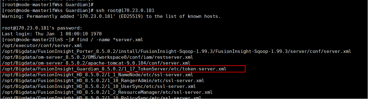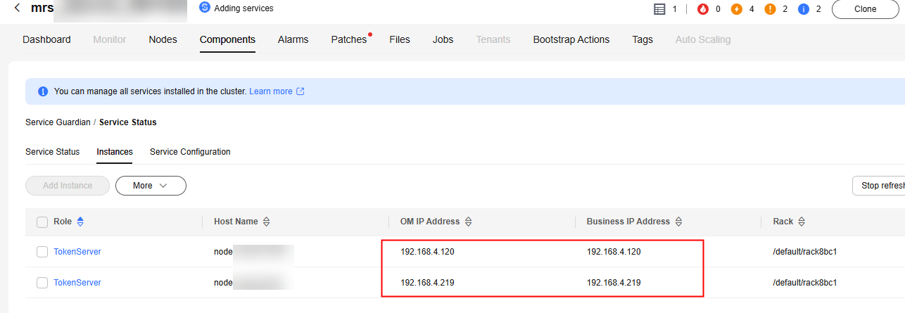 - In the MRS cluster, locate the node where the Guardian component tokenserver is located and log in to the node.