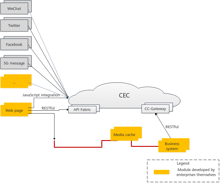 - In new message access mode, enterprises can directly use the new message channel capabilities of the CEC.