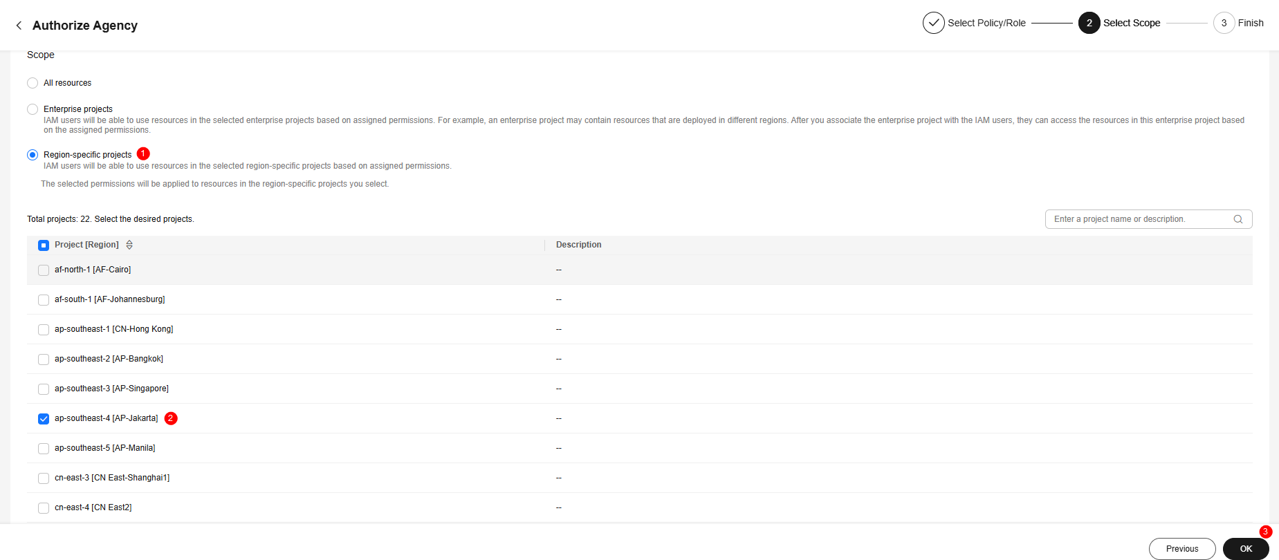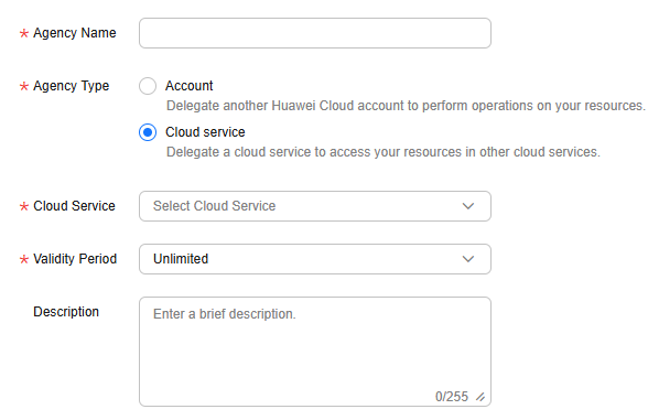 If you do not need to authorize the agency, click Cancel to return to the agency list and view the created agency. The agency does not have any permissions.