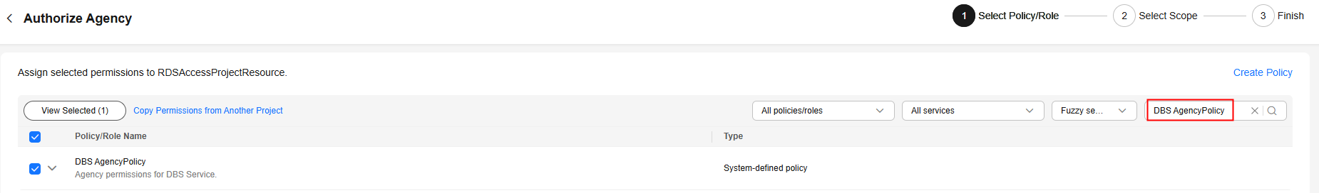 6. Search for and select DBS AgencyPolicy. Click Next.