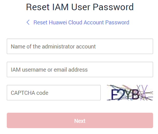 2. Enter the name of the administrator account, IAM username or email address, and CAPTCHA code.