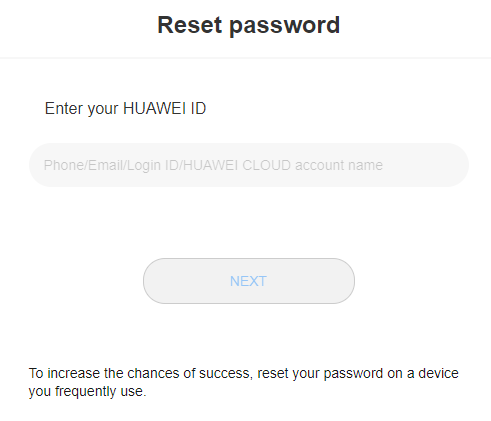 2. Enter your login ID, the mobile number, or the email address used to create your HUAWEI ID, and click NEXT.