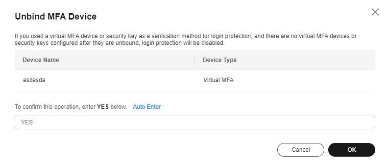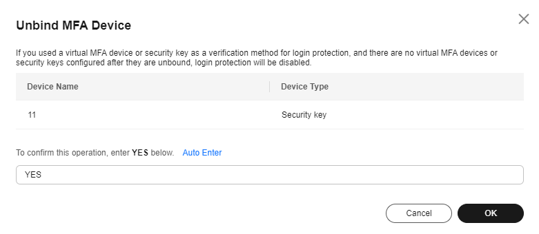 - If your mobile phone is lost, you deleted the virtual MFA application, or the security key of your IAM user is lost, contact the administrator to remove the MFA device.