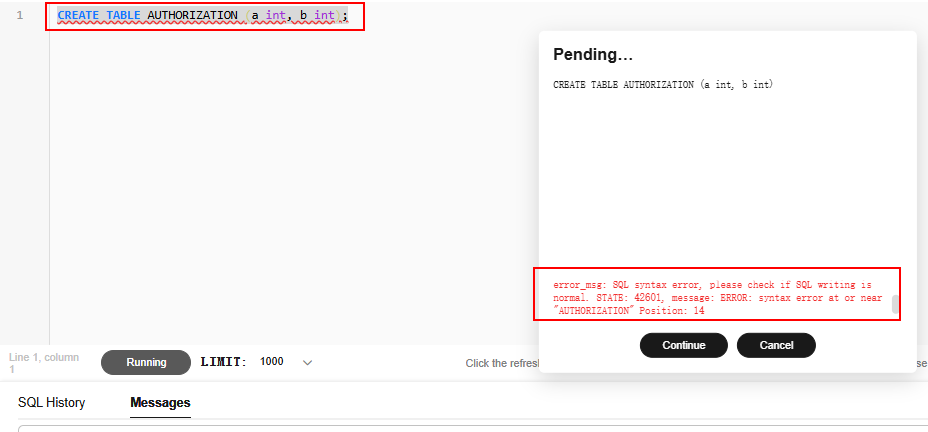 Example: AUTHORIZATION is a reserved keyword. Using it as a table name causes an error and prevents the table from being created.