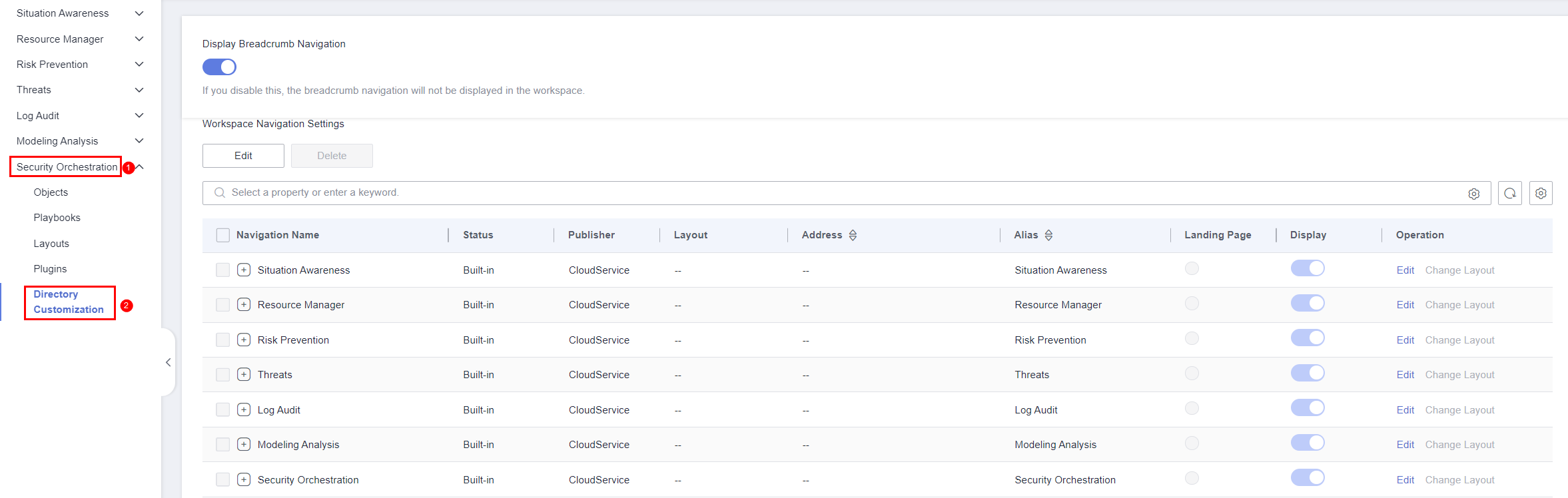 Edit: You can edit Chinese Alias, Alias, Landing Page, and Display of the directory.