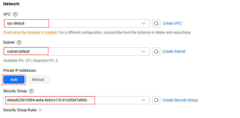 After a security group is created, it has a default inbound rule that allows communication among ECSs within the security group and a default outbound rule that allows all outbound traffic. If you access your Kafka instance using the private network within a VPC, you do not need to add the rules described in Table 1.