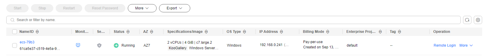 If your account has been associated with an enterprise project, select the target project from the Enterprise Project drop-down list.