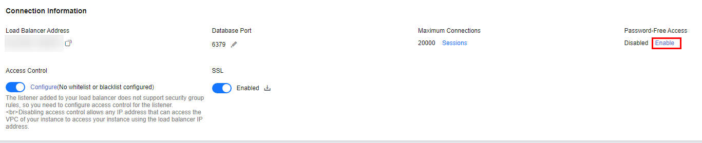 - Password-free access can be enabled for a maximum of 30 CIDR blocks.