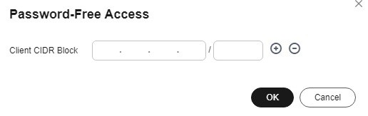 - In the displayed dialog box, enter the CIDR block that you want to enable password-free access for.