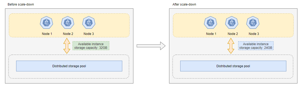 As more data is added, you may run out of storage. This section describes how to scale up storage of your instance. As data volumes decrease, you can scale down storage to avoid low database node utilization and resource waste. Table 1 lists the scaling methods supported by GeminiDB Redis instances.